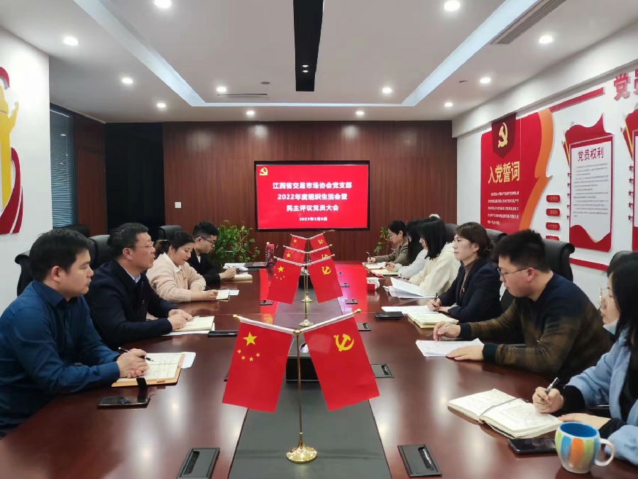 近日,江西省交易市場(chǎng)協(xié)會(huì)黨支部召開(kāi)2022年度組織生活會(huì)暨民主評(píng)議黨員大會(huì)。會(huì)議由支部書(shū)記黃莉主持,支部全體黨員(含預(yù)備黨員)參加,支部黨員發(fā)展對(duì)象、入黨積極分子列席,協(xié)會(huì)執(zhí)行會(huì)長(zhǎng)、江西聯(lián)交運(yùn)公司總經(jīng)理劉祖國(guó)以普通黨員身份參會(huì)。
