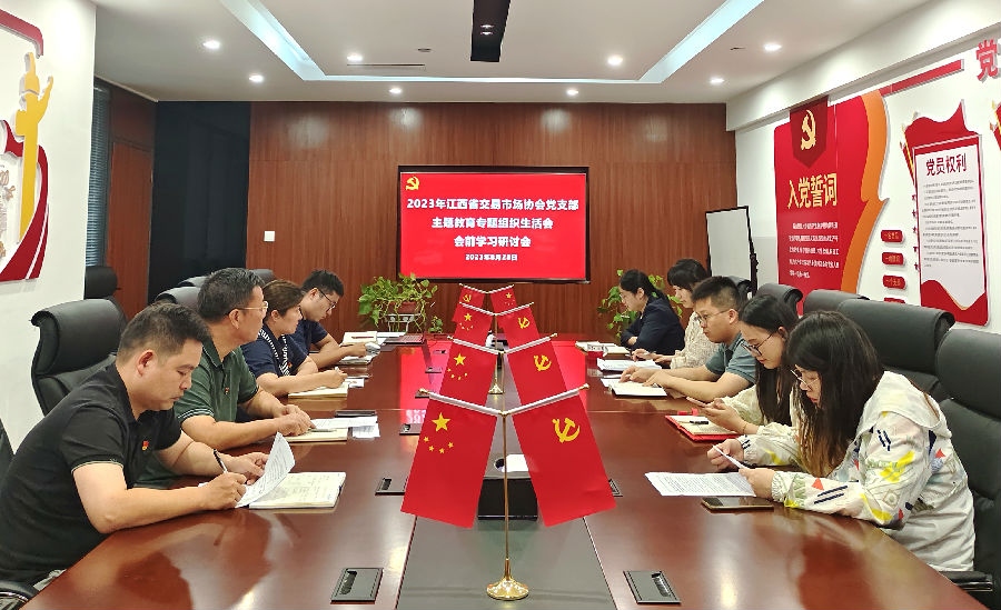 8月28日,江西省交易市場(chǎng)協(xié)會(huì)黨支部開(kāi)展2023年主題教育專題組織生活會(huì)會(huì)前學(xué)習(xí)研討主題黨日活動(dòng)。協(xié)會(huì)執(zhí)行會(huì)長(zhǎng)、省聯(lián)交運(yùn)公司總經(jīng)理劉祖國(guó)主持會(huì)議并講話,支部全體黨員(含預(yù)備黨員)、發(fā)展對(duì)象、入黨積極分子一同參會(huì)。