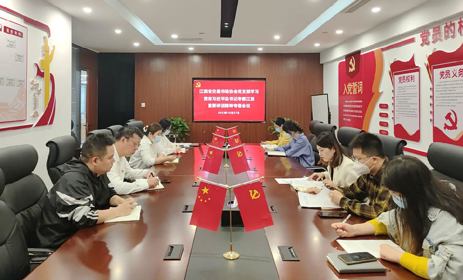 10月10日至13日,習(xí)近平總書(shū)記時(shí)隔四年再度親臨江西考察指導(dǎo),為新時(shí)代江西改革發(fā)展指明新方向、標(biāo)定新坐標(biāo)、賦予新使命、提出新要求,充分體現(xiàn)對(duì)江西工作的高度重視,對(duì)老區(qū)人民的特殊關(guān)愛(ài),對(duì)江西發(fā)展的殷切希望。江西省交易市場(chǎng)協(xié)會(huì)黨支部、省聯(lián)交運(yùn)公司迅速掀起學(xué)習(xí)宣傳貫徹習(xí)近平總書(shū)記考察江西重要講話精神的熱潮,廣大黨員干部緊緊圍繞“走在前、勇?tīng)?zhēng)先、善作為”的目標(biāo)要求,暢談心得體會(huì),切實(shí)把學(xué)習(xí)成果轉(zhuǎn)化為進(jìn)一步做好本職工作的強(qiáng)大精神動(dòng)力。