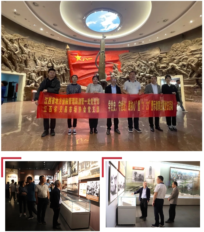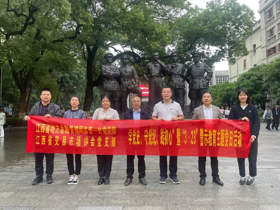 為扎實(shí)推進(jìn)黨紀(jì)學(xué)習(xí)教育走深走實(shí),引導(dǎo)支部黨員增強(qiáng)黨性修養(yǎng)和宗旨意識(shí),永葆“趕考”的清醒和堅(jiān)定。4月25日,江西省交易市場(chǎng)協(xié)會(huì)黨支部與省地方金融管理局監(jiān)管一處黨支部聯(lián)合開(kāi)展“學(xué)黨史 守黨紀(jì) 踐初心”暨“3?23”警示教育主題黨日活動(dòng),集體前往南昌八一起義紀(jì)念館、賀龍指揮部舊址參觀學(xué)習(xí)。省地方金融管理局監(jiān)管一處黨支部書(shū)記李四旺、省交易市場(chǎng)協(xié)會(huì)執(zhí)行會(huì)長(zhǎng)劉祖國(guó)參加活動(dòng)。