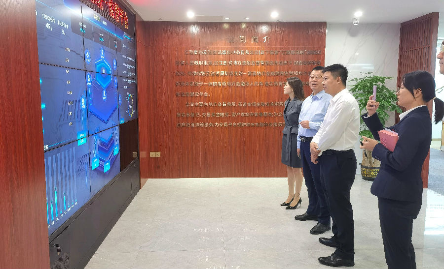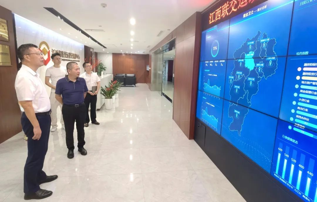 童詠雷一行首先觀摩了公司輔助監(jiān)管信息展示大屏,詳細(xì)了解了公司輔助地方金融監(jiān)管部門建設(shè)運(yùn)營(yíng)的“贛金鷹眼”、“贛金衛(wèi)士”等信息化監(jiān)管平臺(tái)的管理運(yùn)行情況和創(chuàng)新做法,并給與高度肯定。