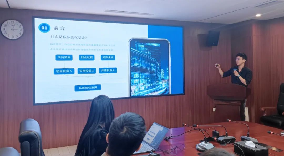 會(huì)上,王瑋以基礎(chǔ)知識(shí)講解和案例介紹相結(jié)合方式,分別從私募股權(quán)基金的起源與發(fā)展、運(yùn)作模式與特點(diǎn)、常用的估值方式以及其在經(jīng)濟(jì)中發(fā)揮的作用等多方面進(jìn)行詳細(xì)介紹。讓大家對(duì)私募股權(quán)基金的基礎(chǔ)結(jié)構(gòu)、股權(quán)投資“募投管退”及當(dāng)前國(guó)內(nèi)市場(chǎng)的發(fā)展趨勢(shì)和社會(huì)經(jīng)濟(jì)效益等有了更系統(tǒng)和清晰的認(rèn)識(shí)了解。在分享介紹后,與會(huì)人員并結(jié)合各自學(xué)習(xí)工作經(jīng)驗(yàn)就部分重點(diǎn)內(nèi)容和問題進(jìn)行了補(bǔ)充發(fā)言與討論交流。