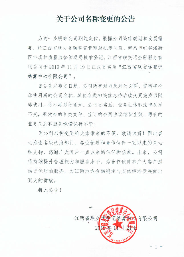 江西省聯(lián)交運(yùn)登記結(jié)算中心有限公司
